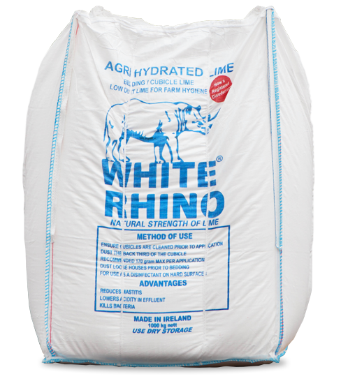 White Rhino Hydrated Lime has a pH of 12.35. It immediately increases the pH of surface areas covered and deactivates mastistis causing bacteria. White Rhino Hydrated Lime will sustain pH levels of treated areas for lasting animal protection